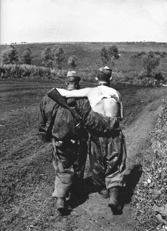 На фото - боец помогает раненому товарищу. Судя по маскхалатам - оба из саперов или разведки, не просты.