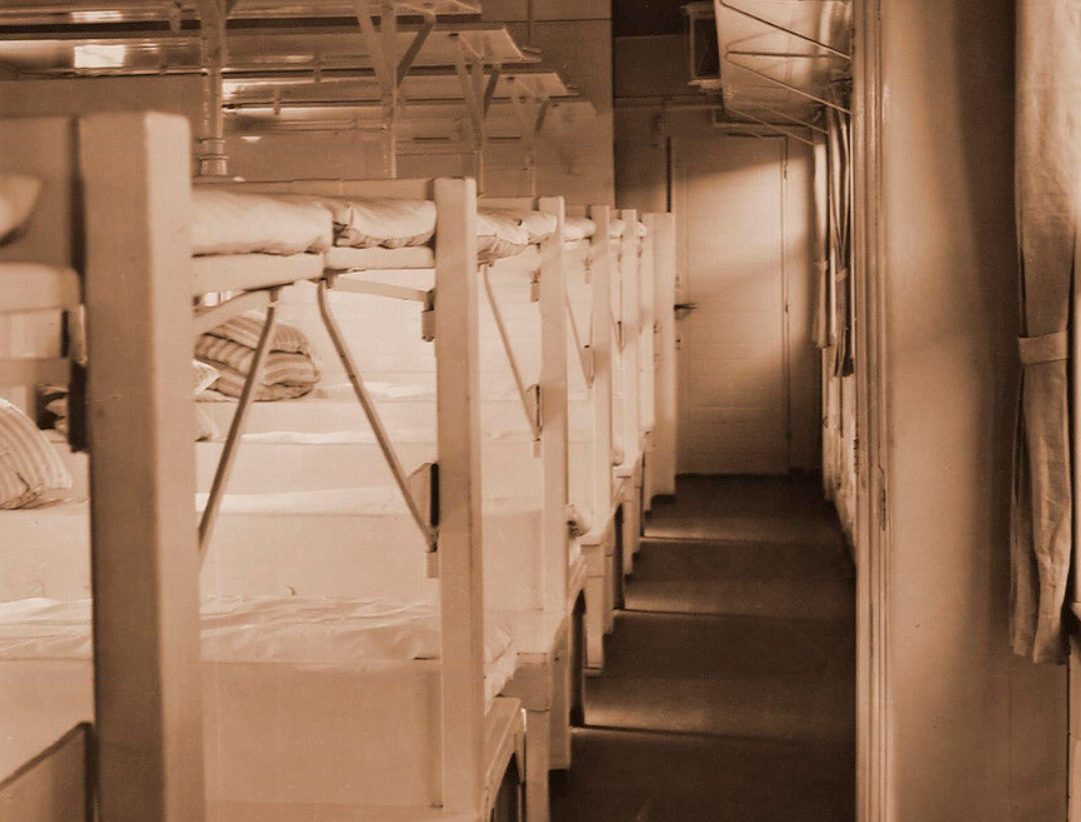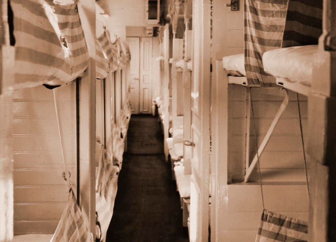 Внутренний вид вагона для персонала военно-санитарного поезда.