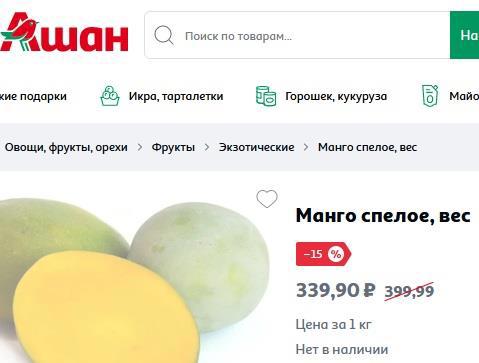 Следует сказать еще кое-то. Вот я сейчас вернулся из похода в московский магазин. Манго - 350 р/кг.
