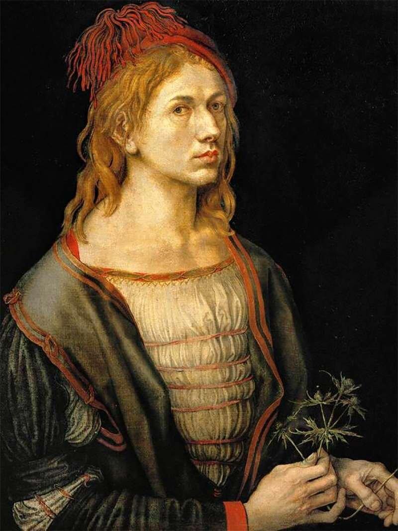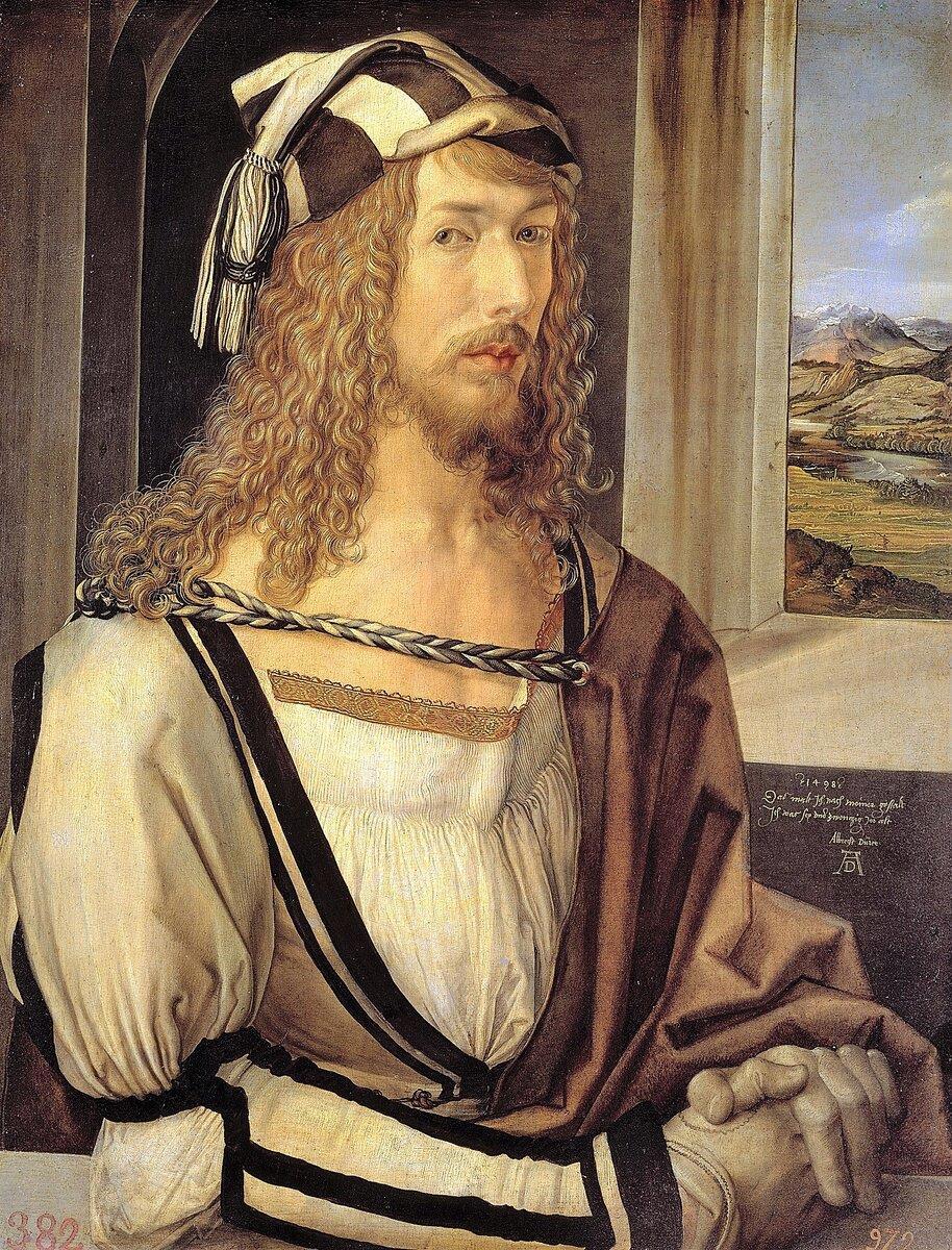 А еще, полагаю, многие вспомнят его автопортреты. И тут опять приходится говорить слово «впервые». Именно Дюрер превратил автопортрет в самостоятельный жанр. И ему нравилось рисовать и писать самого себя, начиная с рисованного портрета, сделанного 13-летним мальчиком. И не удивительно — Дюрер был красив и уверен в себе.