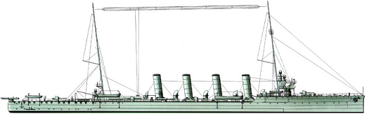 3500/4000 т, ПТ-4, 16 ПК, 25 130 л.с., 27 уз., .... Броня: пояс 60 мм, палуба 20 мм, рубка 50 мм. Эк. 327 чел.