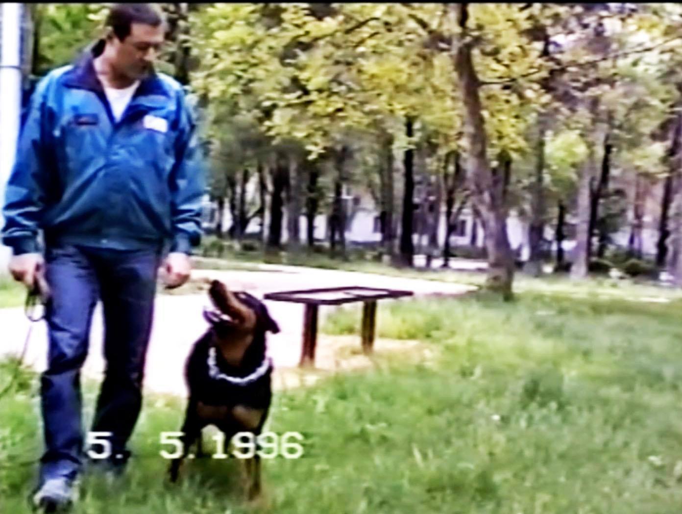 Мы постоянно поддерживали её в отличной физической форме, она с удовольствием бегала, прыгала и выполняла все основные команды. На прогулки в сквер выходило 5-10 собачников с питомцами и начиналась собачья круговерть, только успевай глядеть, разнимать и снимать. Я снимал видео, фотографии, которые вы здесь видите, — стоп кадры тех видео. Качество, конечно, соответствует тем временам.