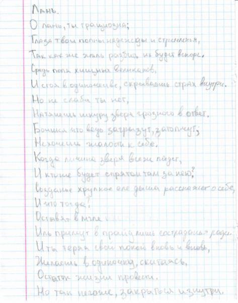 Важно отметить, что стих написан карандашом, и его едва видно - настолько робко пытается заявить о себе автор, что готов фактически не отсвечивать, прятать свое истинное "Я" в сомнениях и размышлениях о том, сможет ли автор быть кем-нибудь когда-нибудь принят?