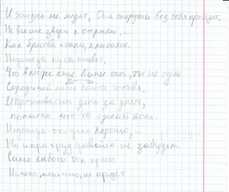 В конце стихотворения автор подчеркивает необходимость действовать, чтобы изменить ситуацию. Надежда и терпение — важные качества, но они должны сочетаться с активностью и усилиями. Бездействие приводит к тому, что жизнь проходит мимо, оставляя человека наедине с его проблемами.