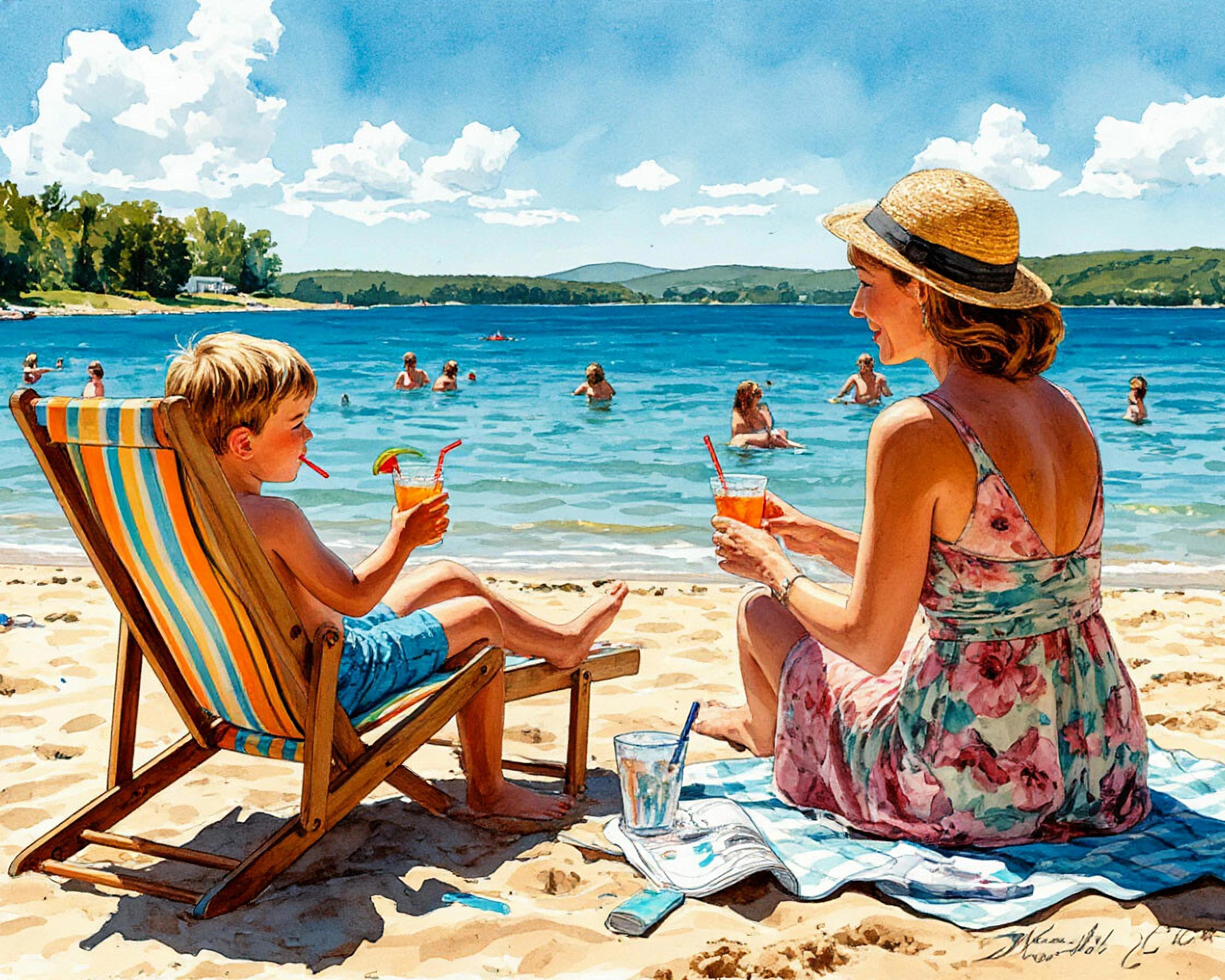 Когда они подошли к пляжу, Илюша сразу же побежал к воде. Вика следила за ним, чтобы он не зашел слишком глубоко и не навредил себе. Илюша плескался в воде, смеялся и кричал от восторга. Вика наблюдала за ним, чувствуя, как сердце наполняется любовью.