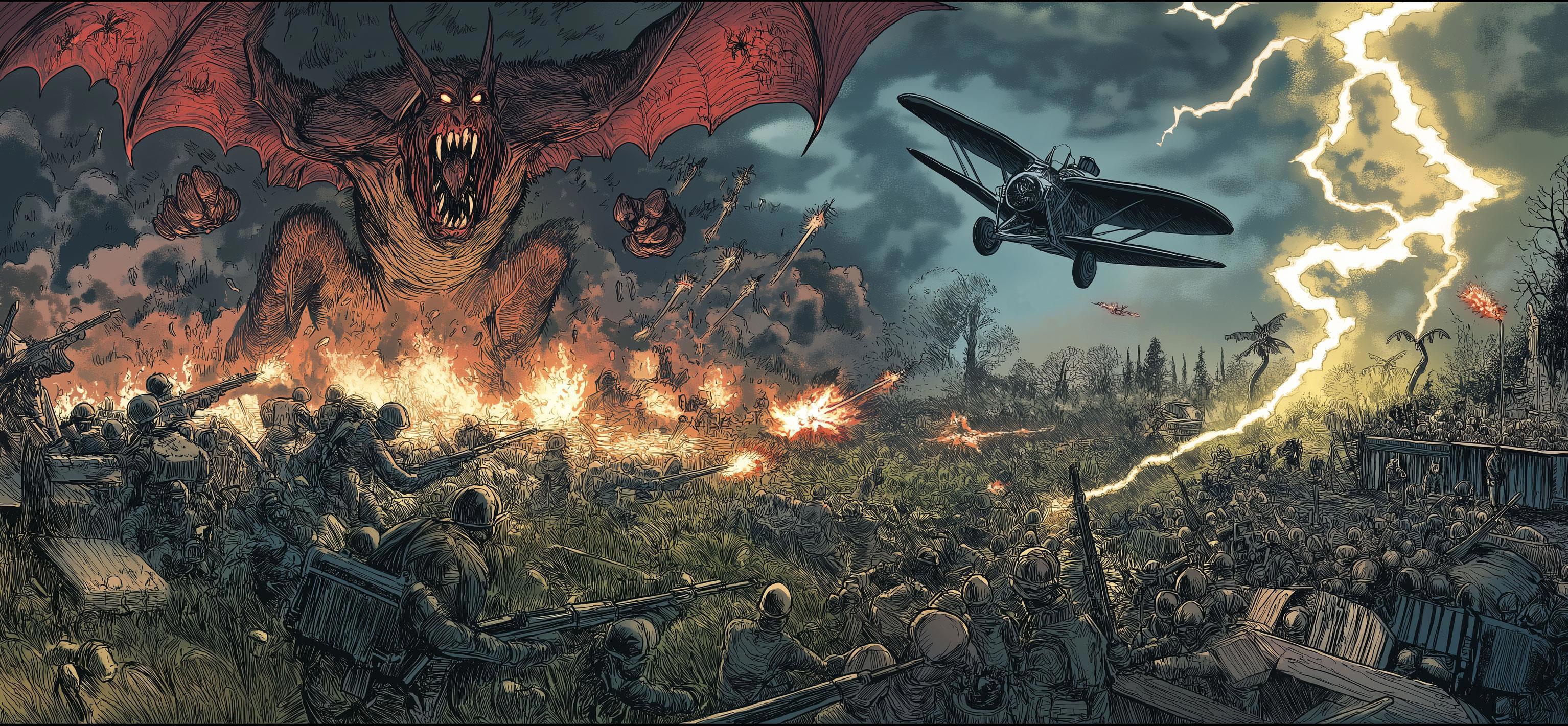 С новыми силами моя армия атаковала замедлившуюся нечисть. Загрохотали пушки и пулемёты, двинулись вперёд танки. В небе появилось несколько самолетов-бипланов, сбрасывавших бомбы сверху на головы врагов. Пехота поднималась из окопов и, выстраиваясь в цепи, с криком «Ура!!!» бежала в контратаку.