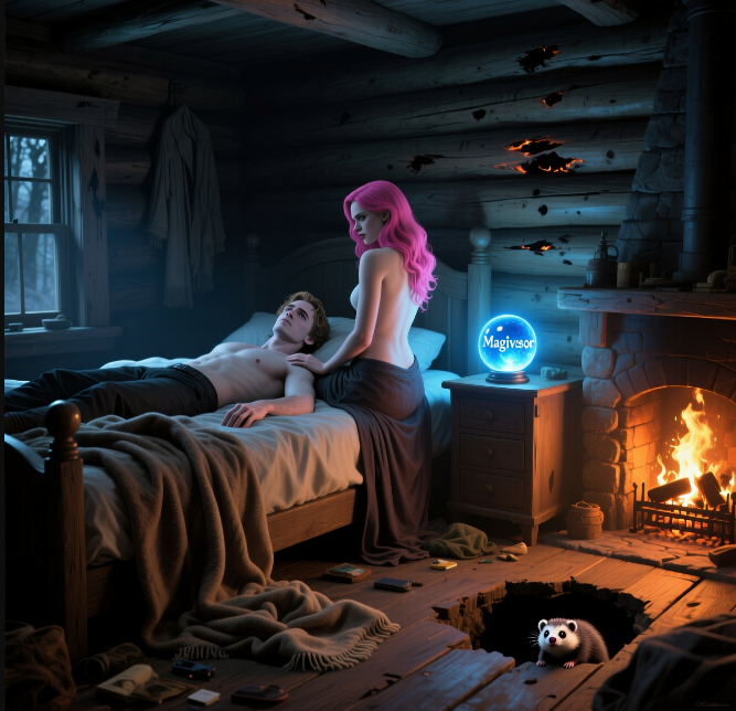 Он усмехнулся и потянулся к хрустальному шару — старому «Магивизору». Шёпот заклинания, и шар ожил, заливая комнату холодным синим светом.