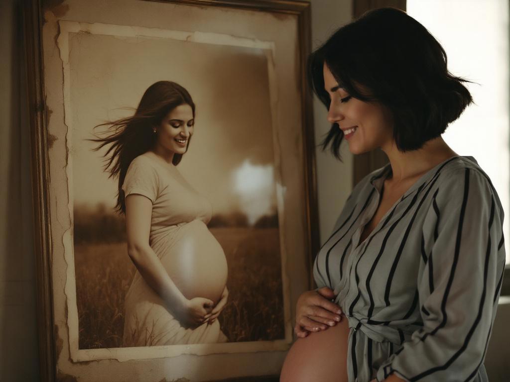 Однажды ночью, пробираясь через оцифрованные архивы забытого музея, она нашла её. Фотографию. Женщину с распущенными тёмными волосами, стоявшую в поле. Она была одета в странное, неуклюжее платье, а руки её лежали на округлившемся животе. И на её лице была улыбка — не социализированная, отработанная перед камерой, а настоящая, наполненная тихой, могущественной силой и тайной. Подпись гласила: «Мария. 34-я неделя беременности».