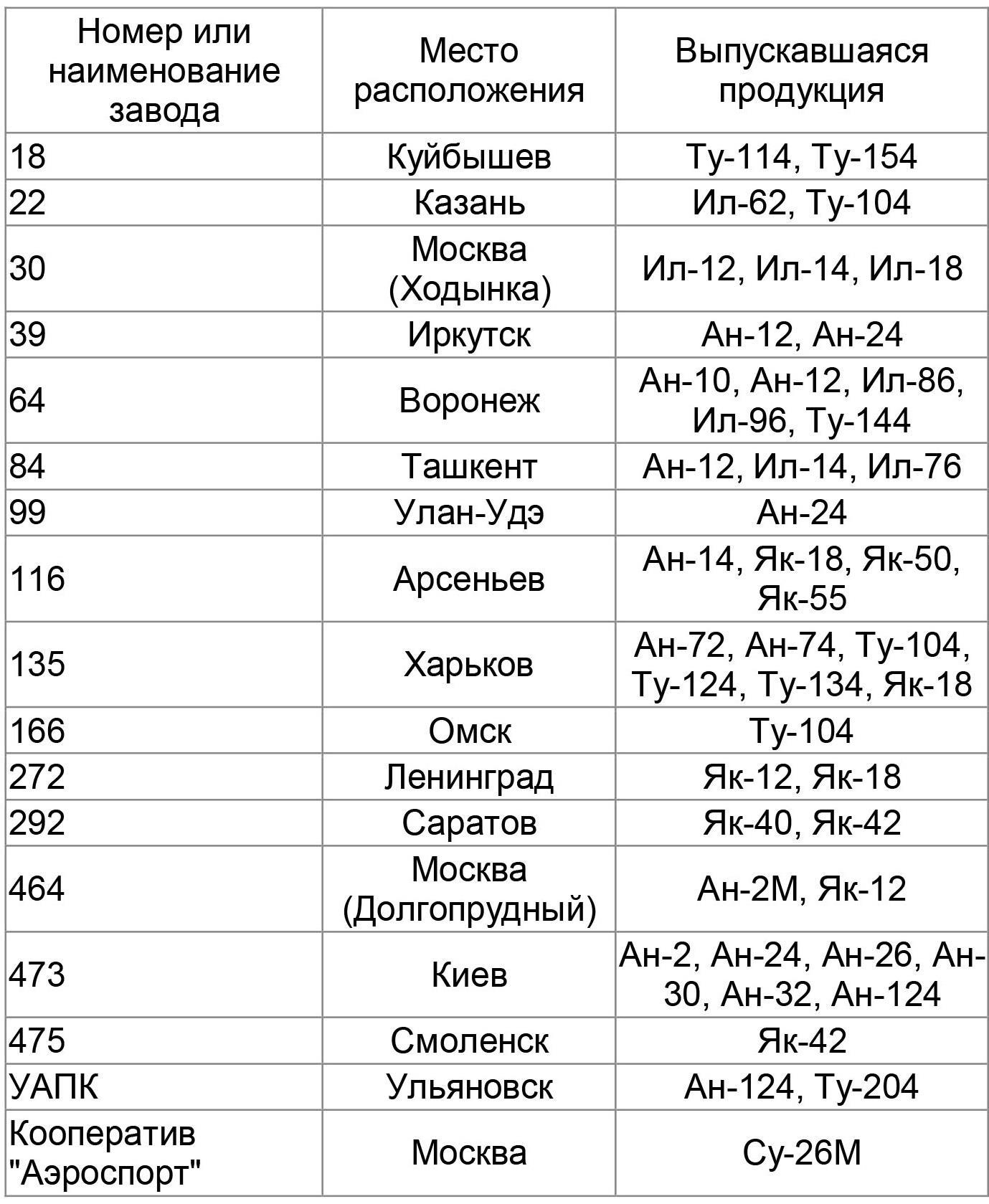 1.Авиационные заводы Советского Союза, производившие самолёты.