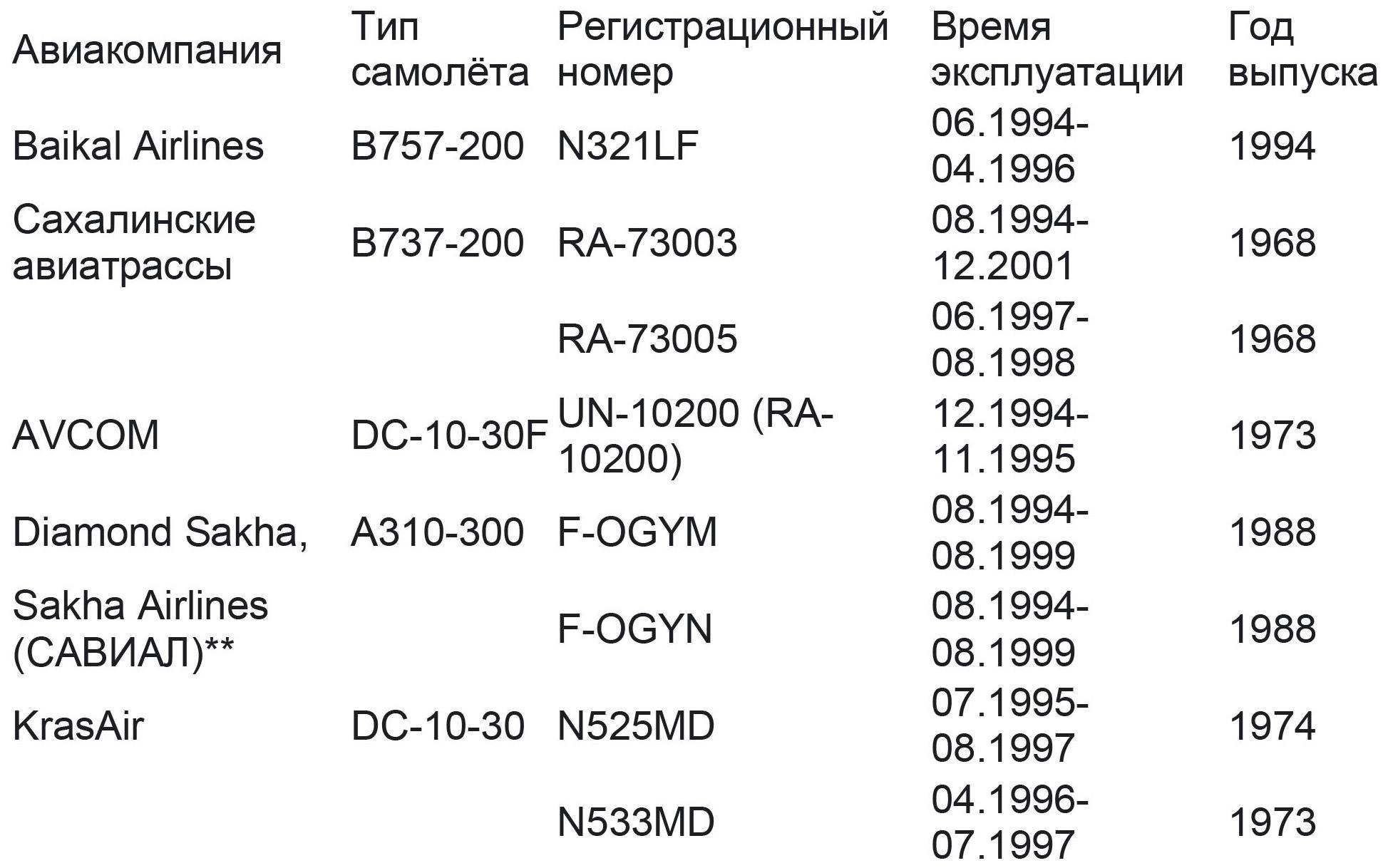 Первые «иномарки» некоторых российских авиакомпаний (1993-1999 гг.)*