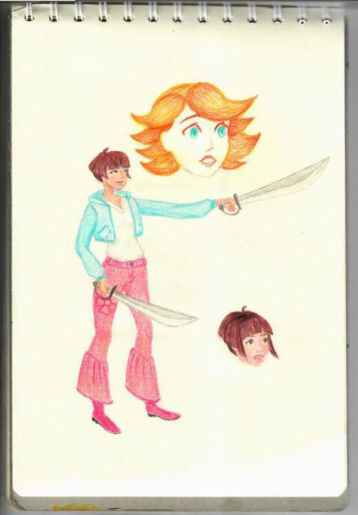Автопортрет Маринетт Мортем изображает её с двумя саблями, напоминающий момент, когда мать купила ей саблю и сфотографировала ее в процессе радостных эмоций.