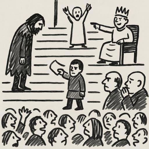 Решающий момент настал, когда я "случайно" уронил свиток прямо перед септоном Баелором — религиозным лидером города. В свитке была цитата из Семиконечной Звезды о милосердии и прощении. Септон прочитал её вслух перед толпой, добавив проповедь о том, что истинная сила королей проявляется не в жестокости, а в мудрости.