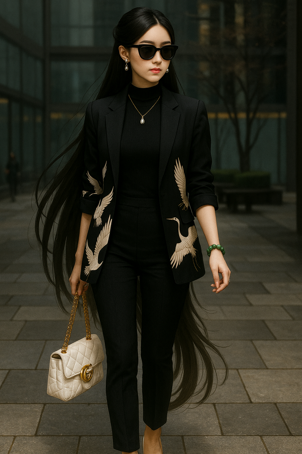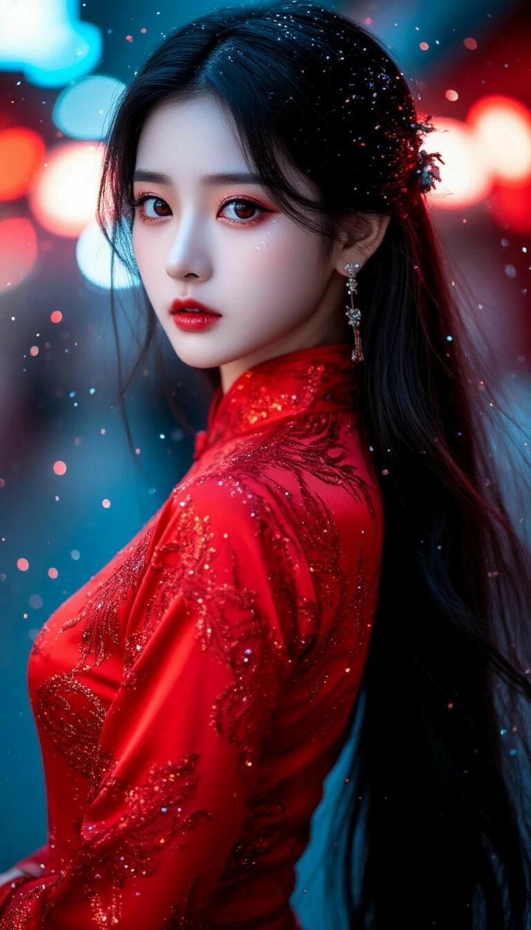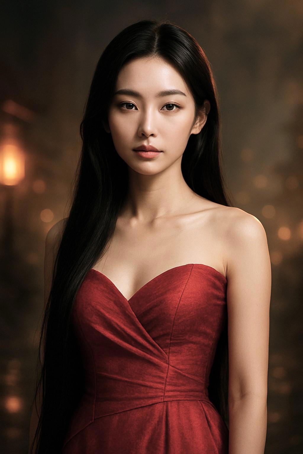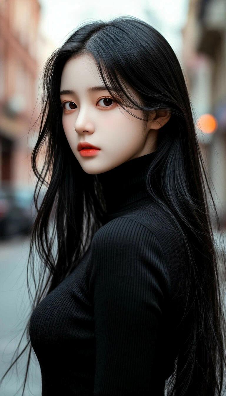 Внешность: Изысканная, холодная красота. Длинные, струящиеся чёрные волосы (раньше носила каре). Фарфоровая кожа без изъянов. Глаза — глубокие, в спокойствии кажутся бездонными, в гневе — острые, как лезвие.