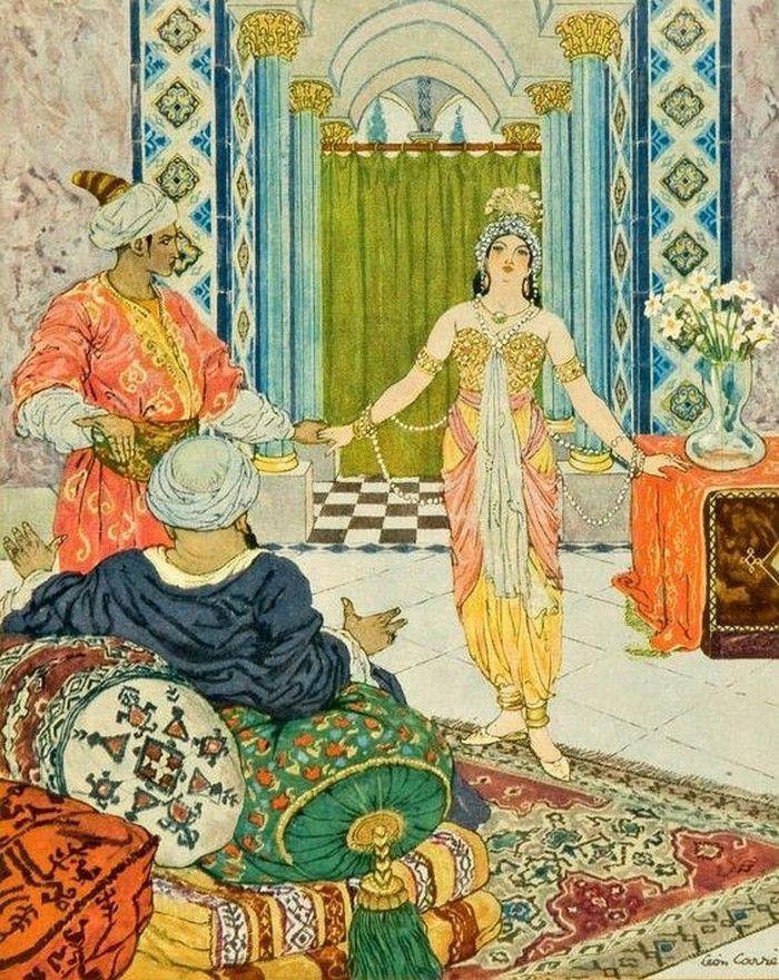 На этот раз он оказался в покоях старинного дворца, которые освещали золотые светильники с ароматным маслом. Пол в помещении был устлан пушистыми коврами. На небольшом возвышении среди груды подушек восседал властного вида мужчина средних лет в богато расшитом золотом халате. Он курил кальян, выпуская струйки дыма к потолку. С ним находились две молодые женщины в полупрозрачных кофточках и цветастых шароварах.