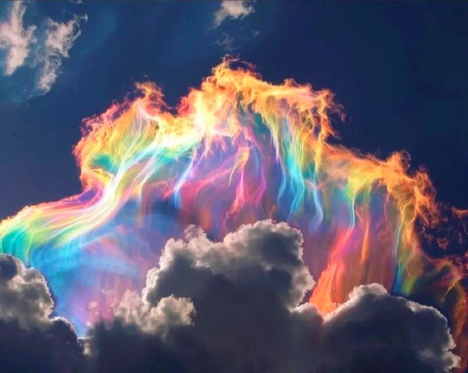 Над городом плыли невероятные в своей редкости облака – их называют «пилеос». Тонкие облака над кучевыми, в них солнечный свет преломляется в мельчайших каплях воды. Радужные облака.