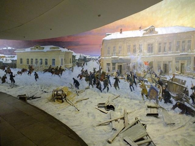 Эпичная диорама в музее на Вышке демонстрирует всем интересующимся конную атаку казаков с шашками наголо на баррикаду перед Сунцевым мостом на ул. Большой (ул. 1905 года), неподалеку от пересечения с ул. Камской (ул. Лифанова). В целом похоже на знаменитую картину Э. Делакруа с полуголой чувихой с красным флагом на баррикаде в Париже, но поскольку было холодно, то народ по большей части одетый. Рабочие отстреливаются, казаки скачут. Наши проиграли (или победили, в зависимости от убеждений).