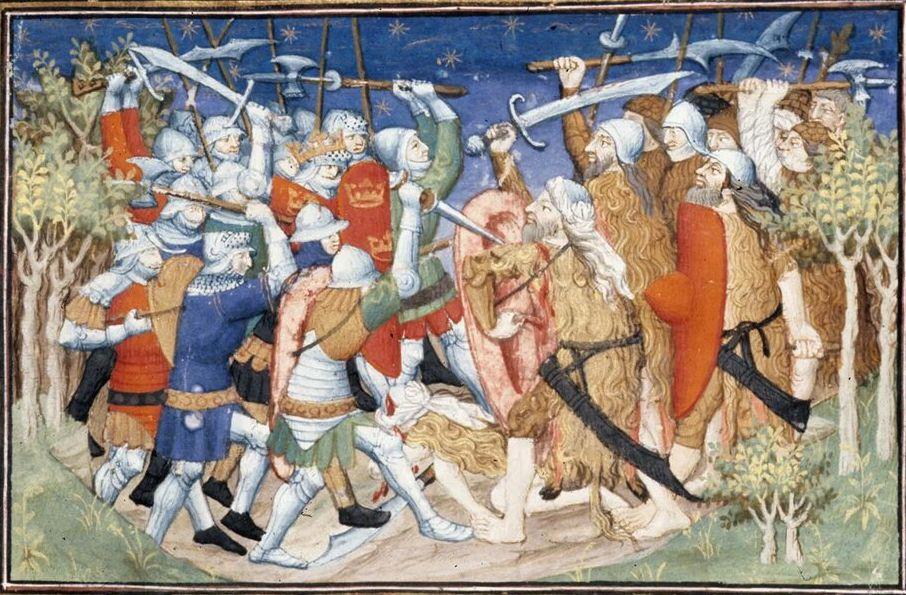 Пять дней длилась лютая сеча. На многие мили вокруг все поля и холмы были усеяны горячим, кровавым крошевом из тел, щитов, копий, доспехов, знамён… Стрелы сыпались, словно дождь, и хрустели под ногами бойцов, подобно хворосту…