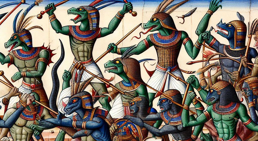 Так вот, Ящер, владыка Нибиру, чёрным своим колдовством проложил путь сквозь звёздный океан, и хлынули на Мидгард полчища беспощадных и жутких рептилонов под командованием Сета, Себека и дракона Апопа. Первый удар бездушных тварей обрушился на Египет.