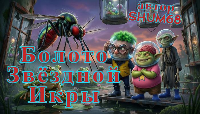 А вокруг раскинулось Бескрайнее Сияющее Болото, где лягушки размером с луноходы булькали гимны закату, а комары-мутанты с крыльями из туманности Ориона жужжали на частоте старых радиоприёмников.