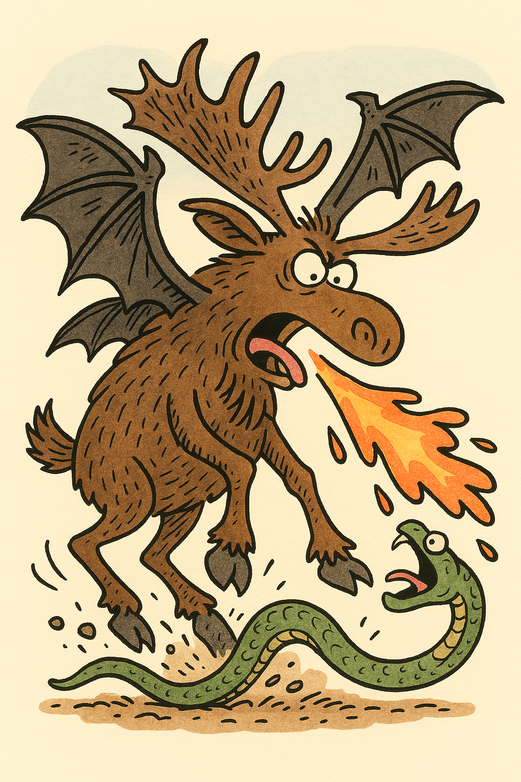 Перед его машиной возникает лось. Вроде бы обычный лось — если не считать драконьих крыльев, пламени из пасти и змей, извивающихся из копыт.
