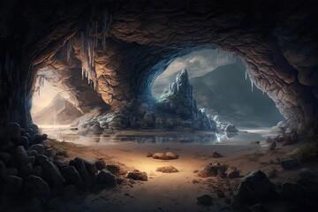Выйдя из своего деревянного убежища, я начал бродить по этому месту. Было довольно светло, ибо пещера оказалась не шибко глубокой и солнечный свет вполне себе проникал сюда. Само же логово (жилища драконов же вроде так зовутся?) было довольно красивым: с потолка свисали лианы с цветущими на них нежно-розовыми цветками, а из огромного входа в пещеру открывался красивый вид на берег.