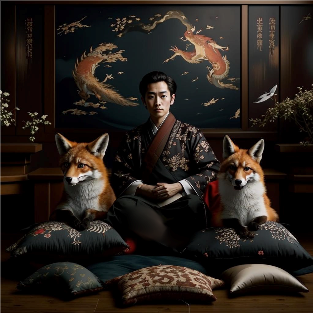 На этот раз он восседал на подушках, разодетый ничуть не хуже императора. Вокруг него вились обнаженные девушки с хвостами и ушками лисиц.