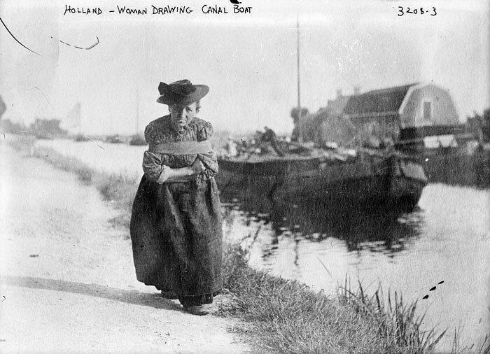 Любуйтесь — фотография начала 1900-х годов (Нидерланды). Тут вообще женщина-бурлак, что было довольно обычным делом.
