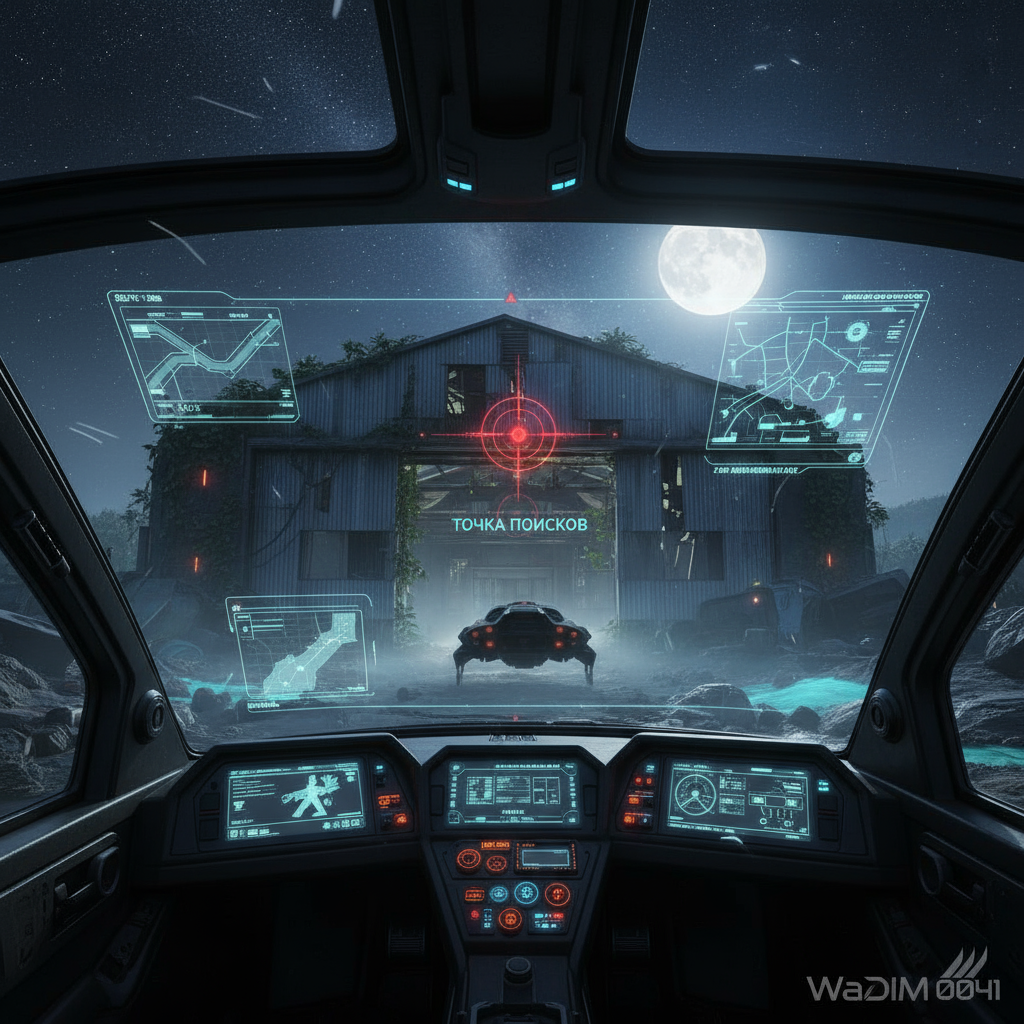 В кабине — напряжённая тишина, прерываемая только гулом двигателей и писком навигации. Вадим за штурвалом, его лицо в бледном свете голографической карты — маска сосредоточенности. Рядом Джуна, сжимает камеру, её глаза гоят от предвкушения: "Это будет кадр, который перепишет историю..." Кристиан сверяет данные дронов на планшете, бормоча: "Сигналы совпадают на 98%... Ангар реален*." А Лиана, синтетический интеллект в облике идеальной женщины, стоит у иллюминатора — её позитронные глаза сканируют горизонт: "Вероятность аномалии: 87%. Рекомендую осторожность."