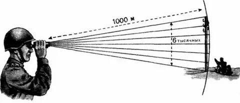 Значит, на расстоянии в километр тысяча тысячных, это предмет шириной тысячу метров, одна тысячная - один метр. Одна тысячная расстояния. На стометровке одна тысячная закроет предмет шириной десять сантиметров. А на расстоянии в метр тысячная будет шириной в миллиметр. Удобно в уме простую пропорцию составить и подсчитать.