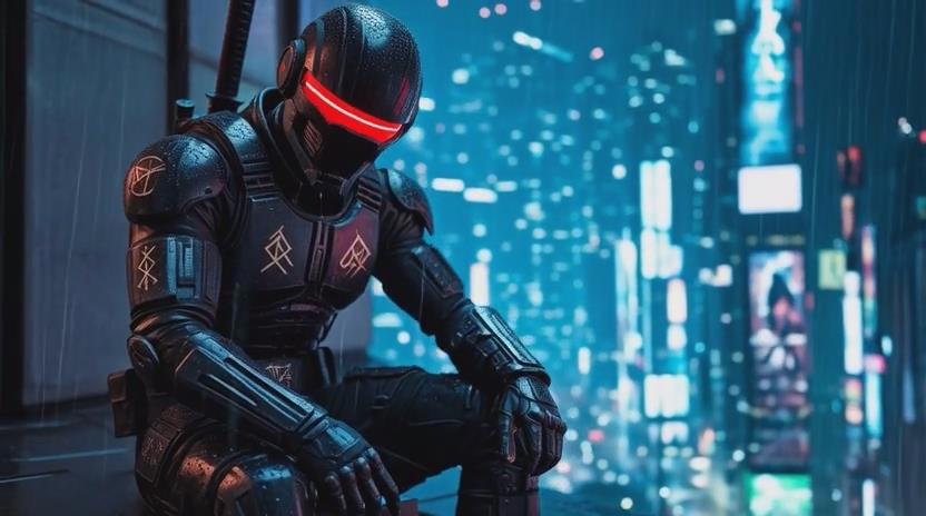 Дождь струился по пластинам его экзоскелета, словно чёрные слёзы. Над ночным городом бушевала гроза, но её раскаты тонули в вечном гуле мегаполиса, что не умолкал даже глубокой ночью. Он сидел на острие крыши небоскрёба, неподвижный, как горгулья. Сквозь багровую линзу визора мир был другим – резким, наполненным тепловыми контурами и недоступными человеку электромагнитными полями.