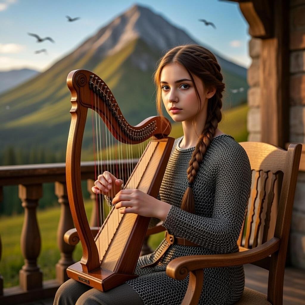 La harpe d’Agunda était faite sur le modèle de la harpe du Narte Syrdon, mais ses cordes étaient en crins de cheval, et son corps taillé dans le tronc d’un chêne millénaire. Sous les doigts fins de la jeune beauté narte s’éleva une mélodie claire et argentée, et Agunda chanta :