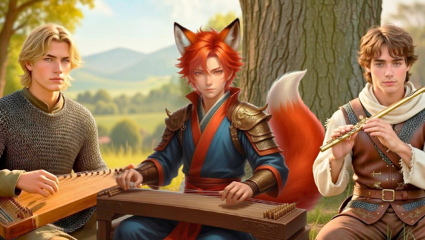 Mais rien n’aidait le pauvre dragon. Il ressentit de la gratitude envers les trois amis qui voulaient tant le guérir, leur donna ce qu’ils cherchaient et les laissa partir en paix, mais eux ne se hâtaient pas de partir. Chacun, en guise d’adieu, offrit au dragon triste sa mélodie la plus chère. Ivanouchka effleura tendrement les cordes d’argent de ses précieuses gusli, le jeune renard tira des sons envoûtants de son cher guqin, et Atsamaz joua sur sa flûte enchantée sa nouvelle mélodie, car toutes les partitions étaient maintenant entre ses mains !
