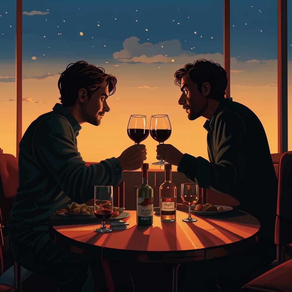 Я и день - сидим весь день, пьём вино.