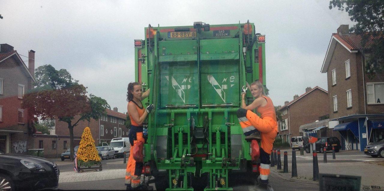 Как часто в России можно увидеть женщин работающих на мусоровозах? Я вот никогда не видел. А в Нидерландах это норма. Особенно в маленьких городах. Можно увидеть совсем юных девчонок лет 17-18 висящих на подножках мусоровозов. Они лихо управляются с мусорными баками, цепляя их к погрузчику. Другие девушки сидят за рулем. Это студентки, которые подрабатывают в клининговых компаниях.