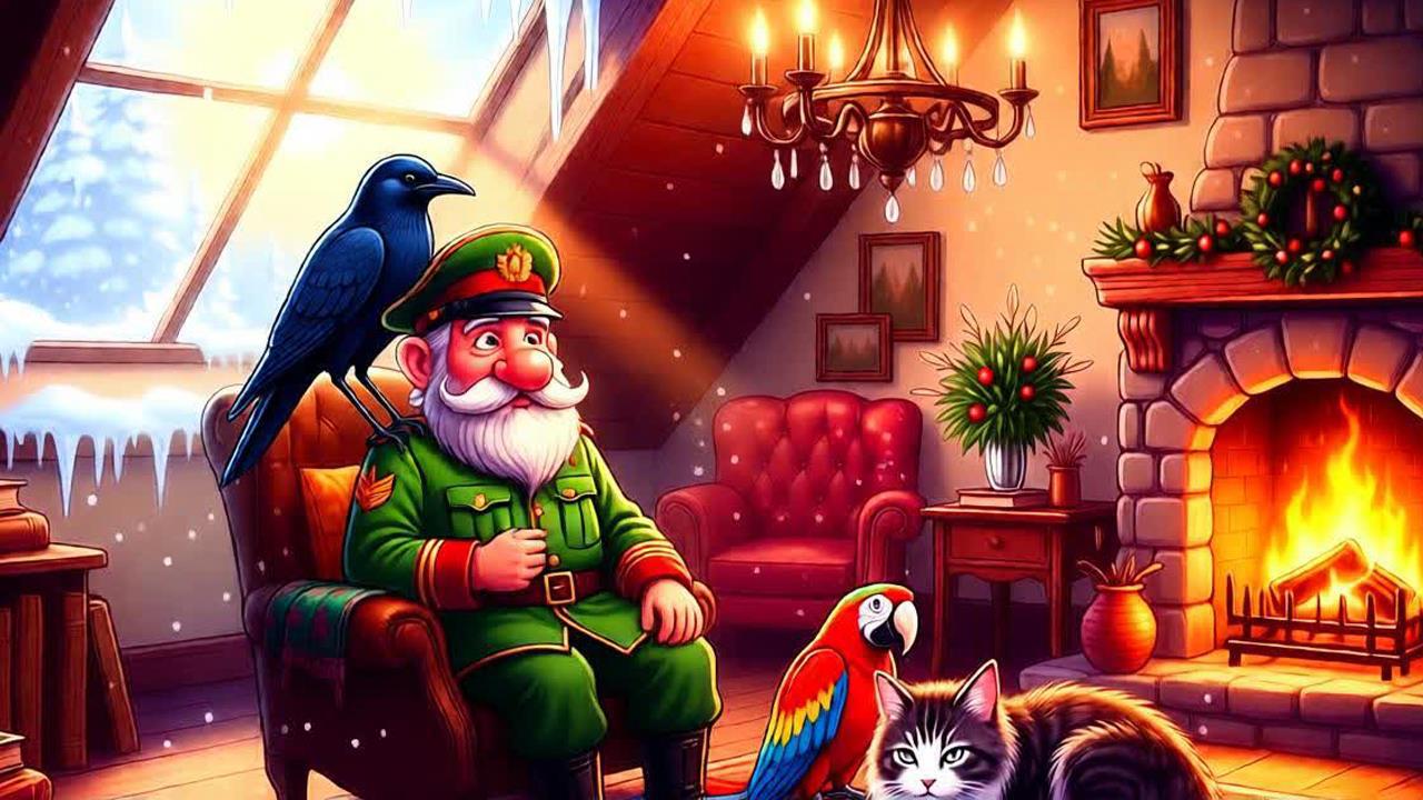 Он вспорхнул, покружил по комнате, заглянул даже в кружку с чаем (туда, видимо, на случай, если подарок утонул), пошарил клювом в коробке с фольгой (Карловна каркнула: «Руки прочь от стратегического запаса!») и наконец извлёк из-под подушки на моей кровати... третий носок. Белый. В красный горошек. И с дырой на пятке.
