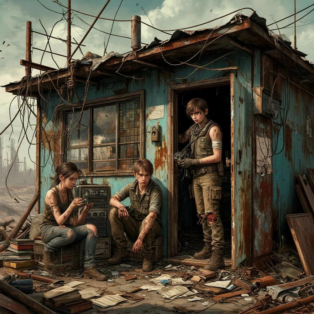 Они сидели в развалинах старой радиостанции, что торчала на холме, как ржавый палец, грозящий небесам, которые давно разучились отвечать на молитвы. Трое. Девчонка, лет двадцати, с умными, но уставшими глазами и руками, перепачканными не только грязью, но и чем-то вроде смазки — звали ее Элара. Она колдовала над каким-то допотопным передатчиком, от которого и исходил тот самый писк. Рядом с ней — парень, почти мальчишка, худой, как скелет, но с решительным взглядом — Лео, кажись, он был технарем-самоучкой. И третий, Маркус, бывший «Молот», я его смутно помнил — здоровенный мужик с лицом, будто вырубленным из гранита, и шрамом через всю щеку. Странная компания.