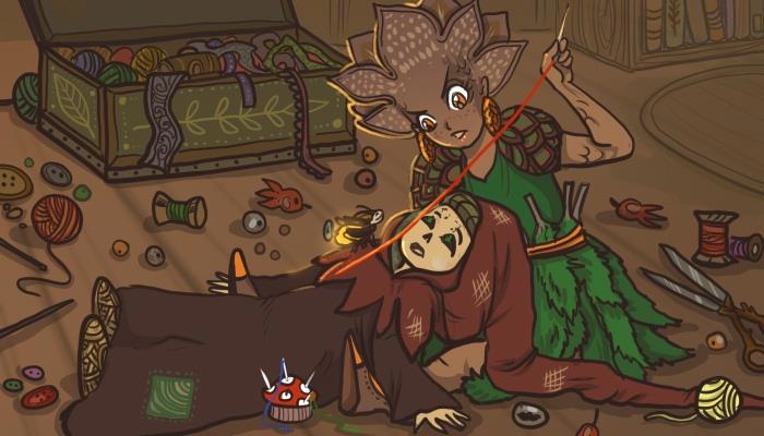 Закончив орудовать иглой, беглянка затянула узелок потуже, продолжая нашёптывать что-то тихо и загадочно, словно заклинание. А затем откусила нитку.