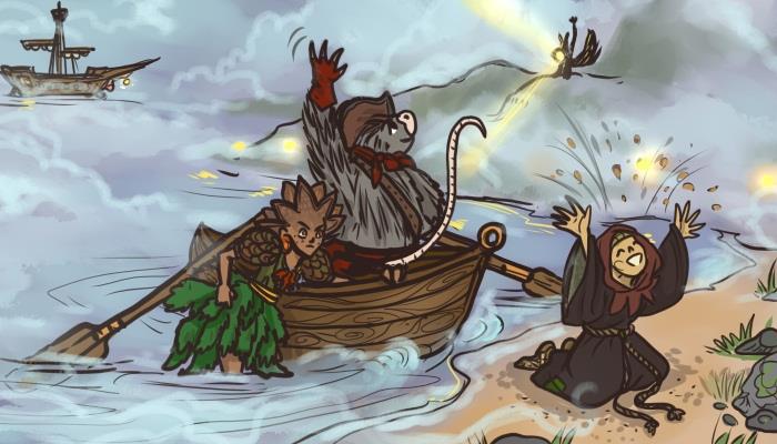 И только одна змейка не устремилась к водам Тихони. Та самая змейка, чешуйки которой искрятся не серебром, но золотом. Это был Шипун, на чьей спине сидела венценосная Шишка, держа во вскинутой руке остывшую головешку Пайрапетры.