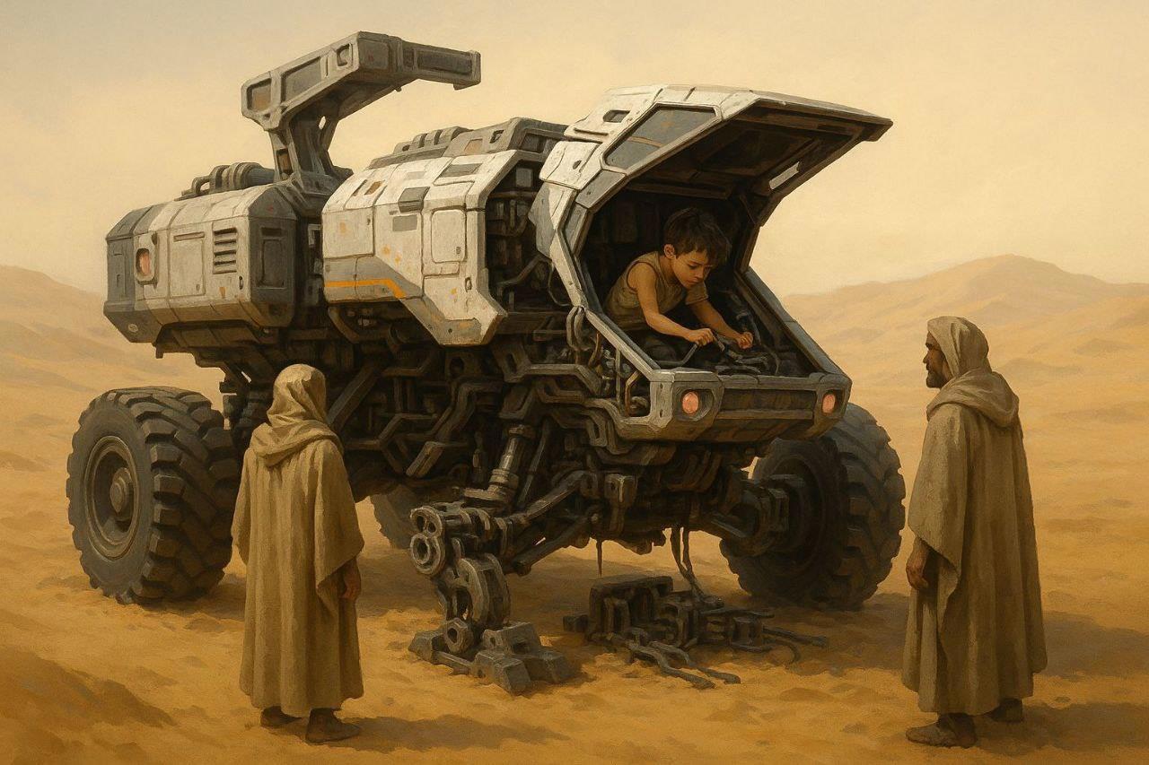 Два здоровенных лба, с ученными степенями и огромным запасом всяких знаний по экзопланетам, безропотно слушают ворчания десятилетнего мальчика. Которой спокойно, без суеты, чинит им сломанную машину, понося на все корки наши светлые головы безо всякого стеснения.