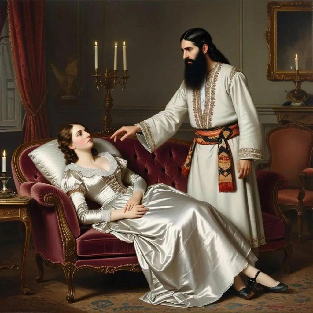 Ардашир замолк и взглянул на Смхирбаза и Демидова. Он не сказал ни слова, но всем стало понятно, что сейчас следует хранить молчание. Перс снова углубился в чтение. Затем, не отрывая глаз от манускрипта, он поднял правую руку, указал на серебряный поднос, на котором ещё тлели угольки. Сихирбаз подскочил с места, принёс персу поднос и поставил его на столик. Все подумали, что Ардашир сейчас бросит в угли какого-нибудь порошка или брызнет туда жидкость из флакона. Но нет, Перс лишь поднёс ладонь к углям и продолжил чтение. Удивительно, но почти погасшие угольки в этот момент загорелись с новой силой, причём к обычному оранжевому свету добавилось светло-голубое свечение. Ардашир убрал руку от углей, но они разгорались всё сильнее и сильнее. Он встал из-за столика, вышел на центр зала. Сначала он просто покачивался из стороны в сторону, а затем начал совершать медленные круговые движения. И вот он закружился, словно юла. Иногда он останавливался и начинал кружение в другую сторону. Он то вскидывал руки вверх, то разводил их в стороны, то опускал их вниз. Этот безумный танец продолжался довольно долго. Этот танец сопровождался какими-то словами, может даже, возгласами перса. Гости Сихирбаза, да и он сам, внимательно следили за Ардаширом. И в какой-то момент, всем показалось, что он своим танцем словно загипнотизировал всех. И всем показалось, может только показалось, что они начали понимать те слова, которые произносил и выкрикивал Ардашир, хотя произносил их он всё на том же непонятном языке.