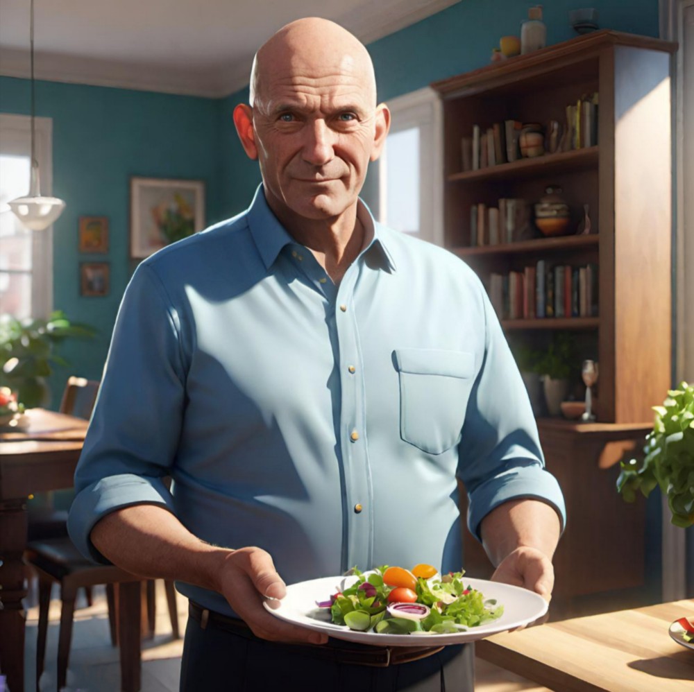 Со стороны кухни с тарелкой салата показался отец — крепкий мужчина с сияющей лысиной.