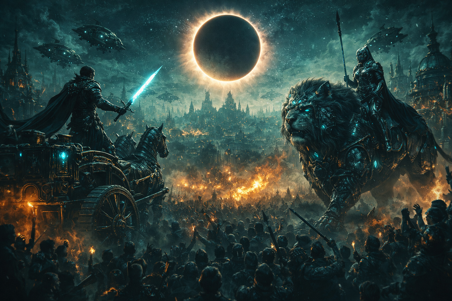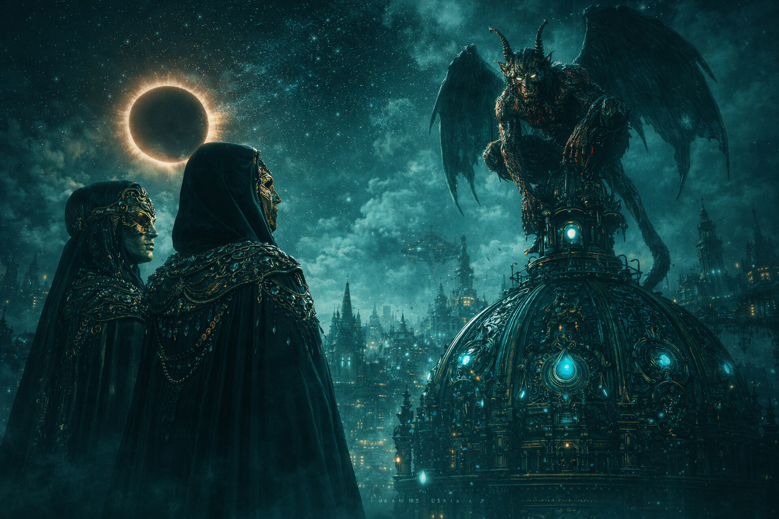 И в этот момент где-то наверху, за слоями промышленного дыма, Луна коснулась края Солнца. Тень быстро начала пожирать свет. На город, который и так жил в полумраке, опустилась настоящая, Вечная Ночь.