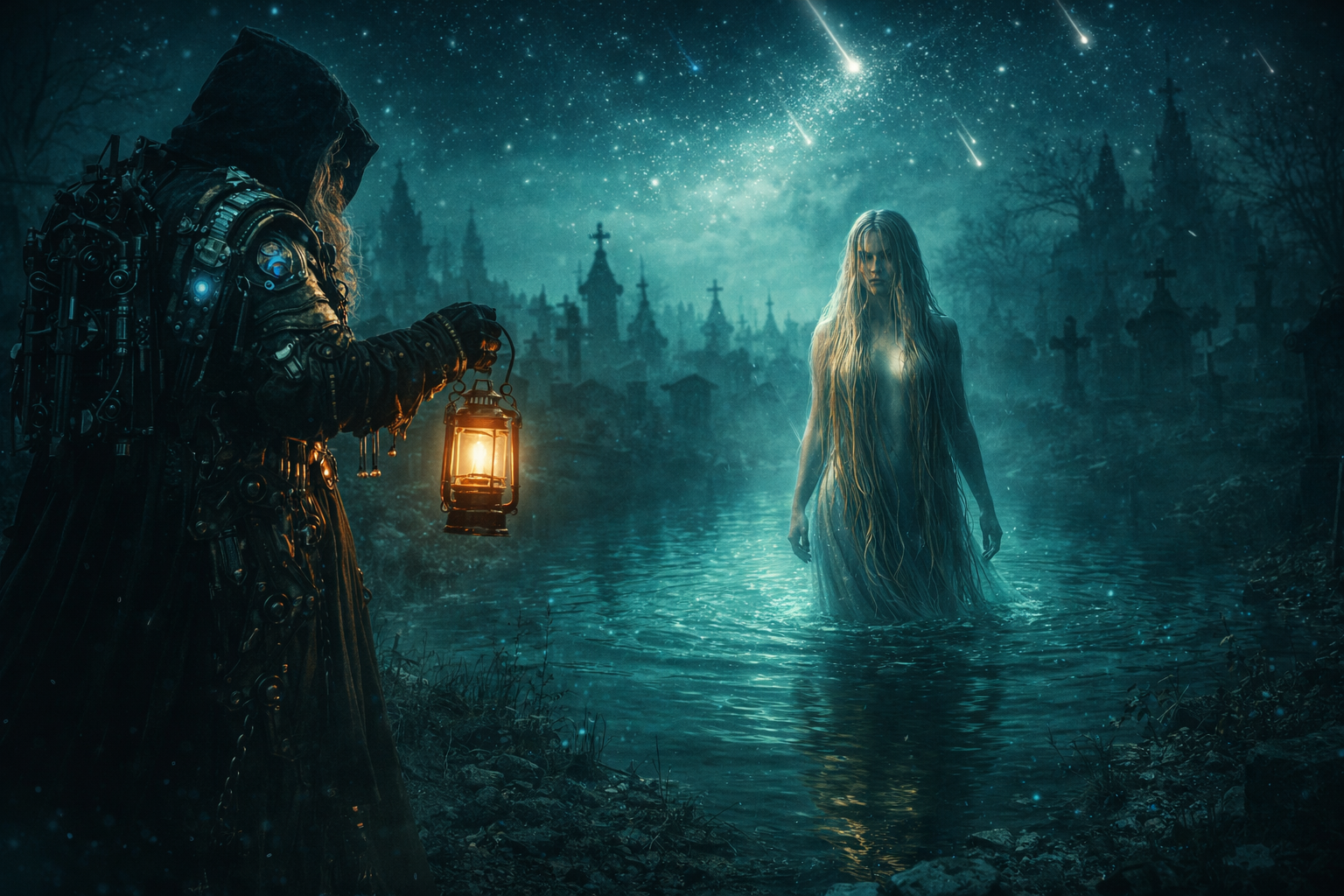 Звезда вышла из воды. Она была нага, кожа светилась мягким, жемчужным перламутром, а длинные волосы напоминали кометный хвост. Вода вокруг неё начала стремительно очищаться, становясь прозрачной. Круги расходились во все стороны, превращая сточную канаву в святой источник.