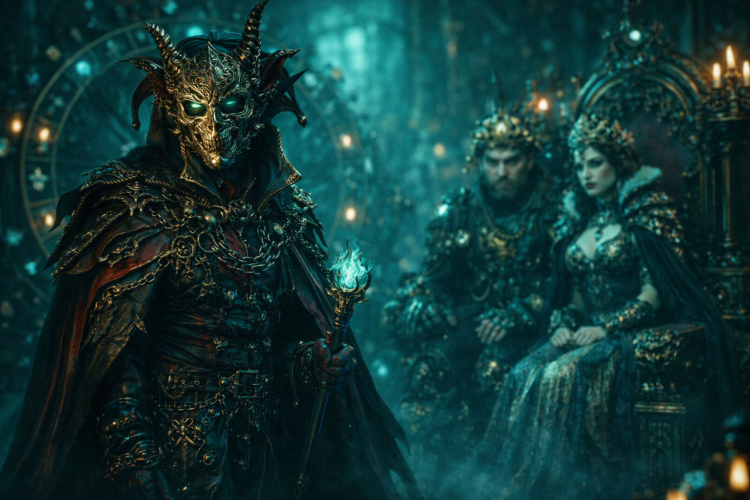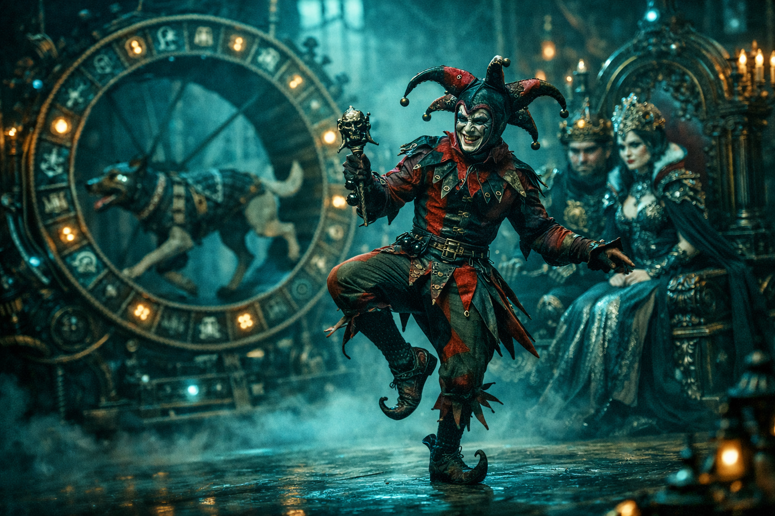 Шут замер. Его нарисованная улыбка не дрогнула, но глаза, один голубой, другой чёрный, едва заметно сверкнули.
