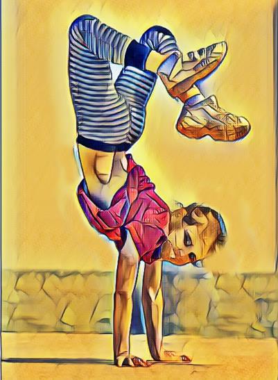 И он зашагал дальше — попятился , ловко лавируя между прохожими , которые двигались тоже кто задом наперёд , кто боком , а одна девочка лет восьми и вовсе шла на руках , деловито перебирая ладошками по брусчатке , и никто не обращал на неё ни малейшего внимания .