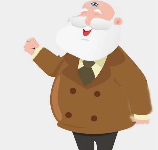 Маленький и кругленький , с огромными пышными усами . Усы росли не вниз , как у всех нормальных людей , а вверх , торча к потолку двумя белоснежными султанчиками , будто их надули воздухом . Из-за этого лицо у него казалось вечно удивлённым и чуточку обиженным , как у котов , когда им надевают бант на голову .