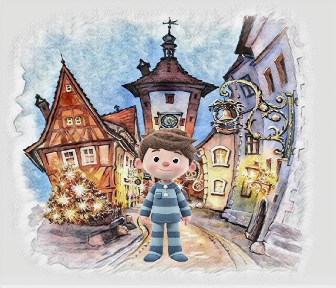 Эрик зажмурился . А когда открыл глаза... мир вокруг стал другим . Мальчик стоял посреди улицы . Но это была не улица с мокрым от дождя асфальтом . Здесь было утро — настоящее , солнечное , тёплое . Солнечные лучи падали на мостовую так щедро , будто кто-то развеял над городом много-много сияющих золотинок .