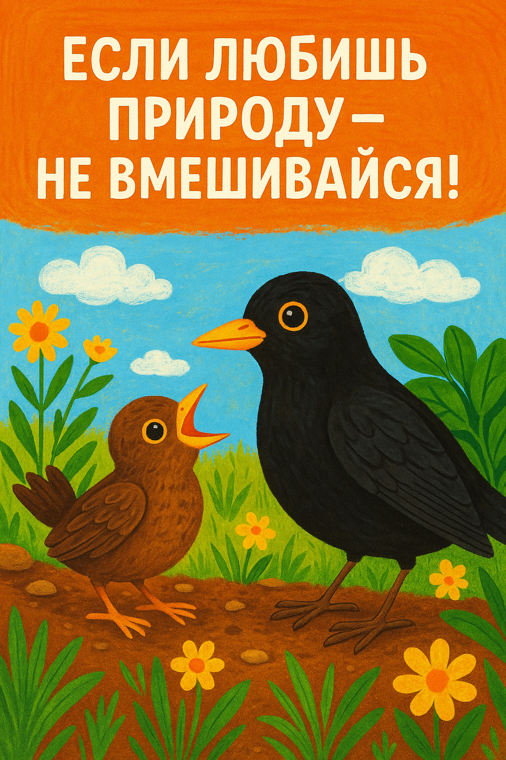 Каково же было его удивление, когда он узнал, что птенцы чёрных дроздов из-за внушительных размеров не помещаются в гнёздах и выскакивают из них. Родители дроздов докармливают птенчиков ещё месяц на земле, пока они не окрепнут и не научатся летать.