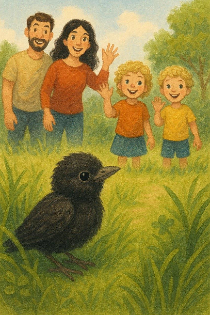 Сделав это, папа почувствовал облегчение и решил побыстрее вернуться домой, чтобы рассказать проснувшимся с дневного сна ребятишкам, почему пришлось отпустить птенчика.