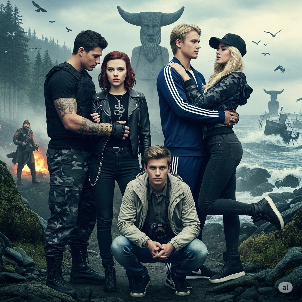 Макс с Тимом принялись расставлять палатки, тогда как девчонки, шушукаясь, убрались в лес, неся в руках взятые из рюкзаков тугие свертки. Спустя некоторое время они появились снова преобразившись: Ольга надела короткий топик, обтягивавший ее высокую грудь и открывавший полоску живота с колечком пирсинга в пупке. Черные штаны сменили короткие джинсовые шорты, с заманчивыми разрезами чуть ниже округлых ягодиц. Вика же накинула косуху почти на голое тело — ее грудь прикрывал только лиф от купальника, а бедра — кожаная мини юбка с боковой шнуровкой. На бедре красовалась татуировка в виде извивающейся змеи. Как и Ольга, Вика шла совершенно босой.